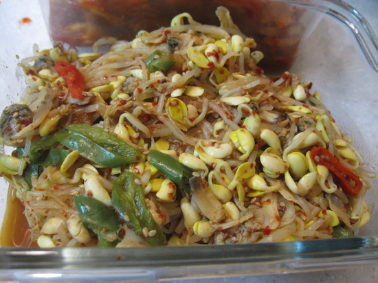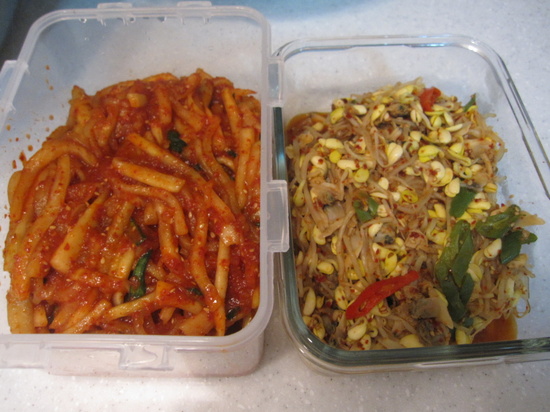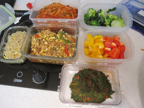 콩나물무침,무채김치,깻잎무침,브로콜리,파프리카,