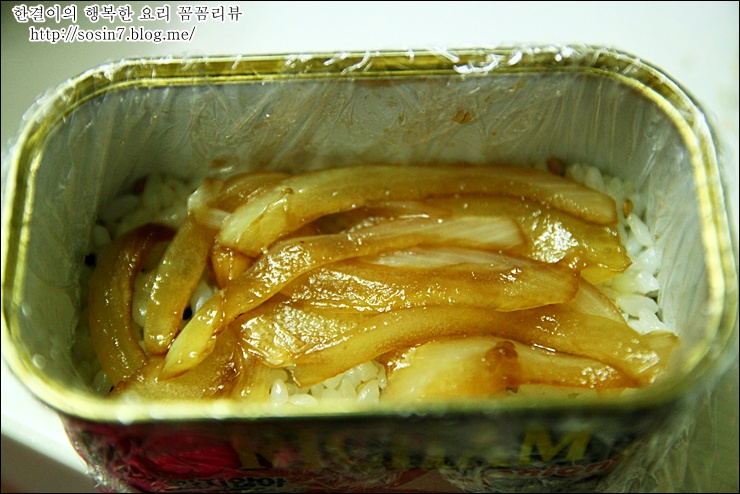 스팸한통.밥2공기.양파반개.간장 2T.설탕 2T물 4T 김약간.