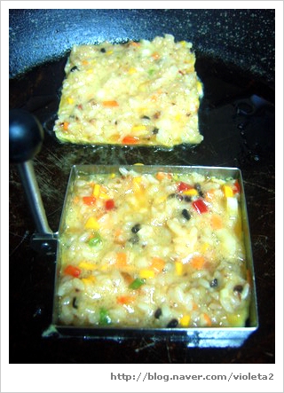 아이들이 좋아해서 자주 해 주는 간식중에 하나인 라이스피자를 올려봅니다