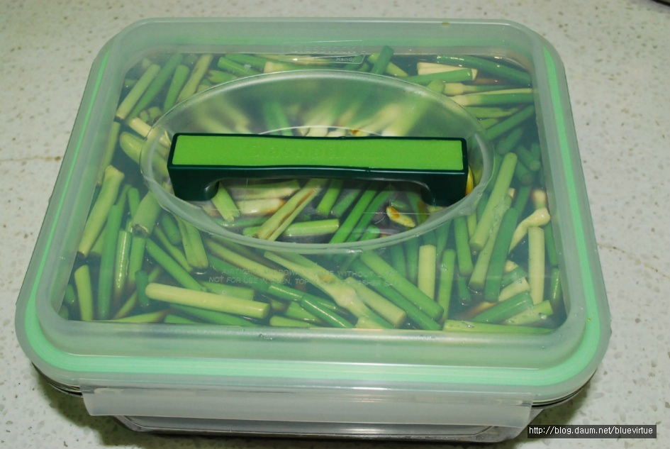 신랑이 먹기 좋게 마늘쫑을 썰어줬어요.