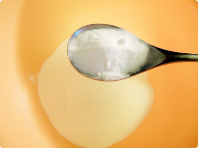 little less than a tsp of baking soda!!