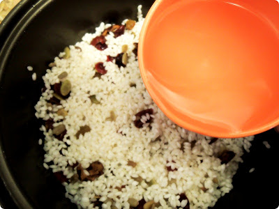 When the rice is ready, mix all of my ingredients and put them in the rice cooker~