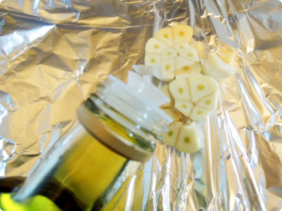 On the cooking foil, add the garlic and drizzle some good quality olive oil and put it in a oven. 쿠킹오일위에 통마늘을 잘라 올리브유를 두른뒤 오븐속에 넣습니다..