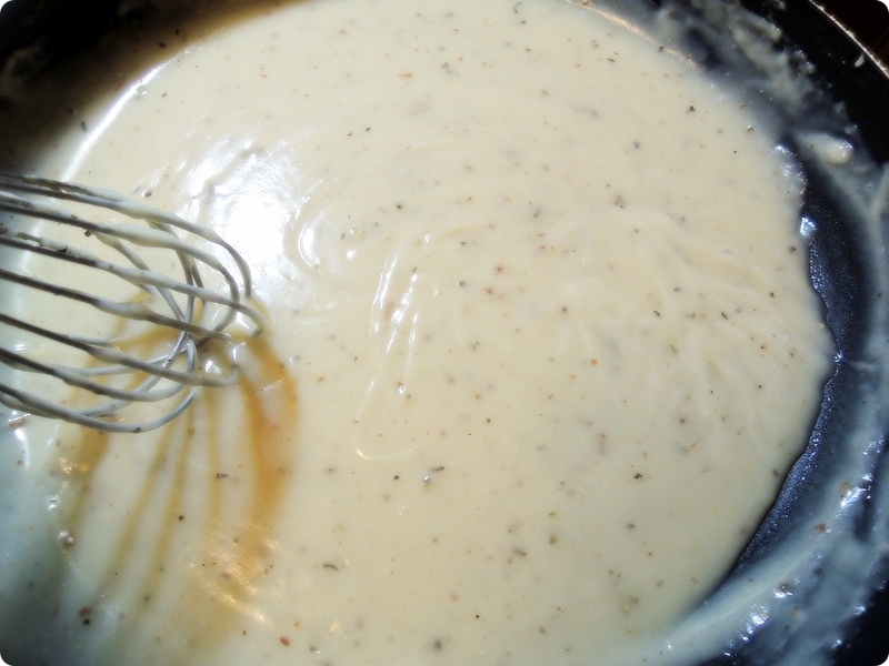 Sauce: 1/2 flour, 1/2 butter, white wine, chicken stock, some mixed mushrooms