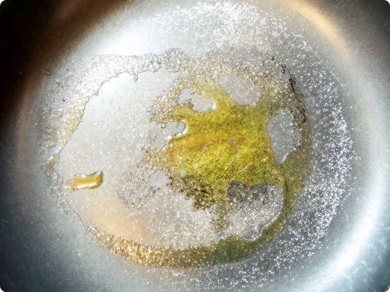 On a frying pan, glaze some olive oil, some salt and cracked pepper
