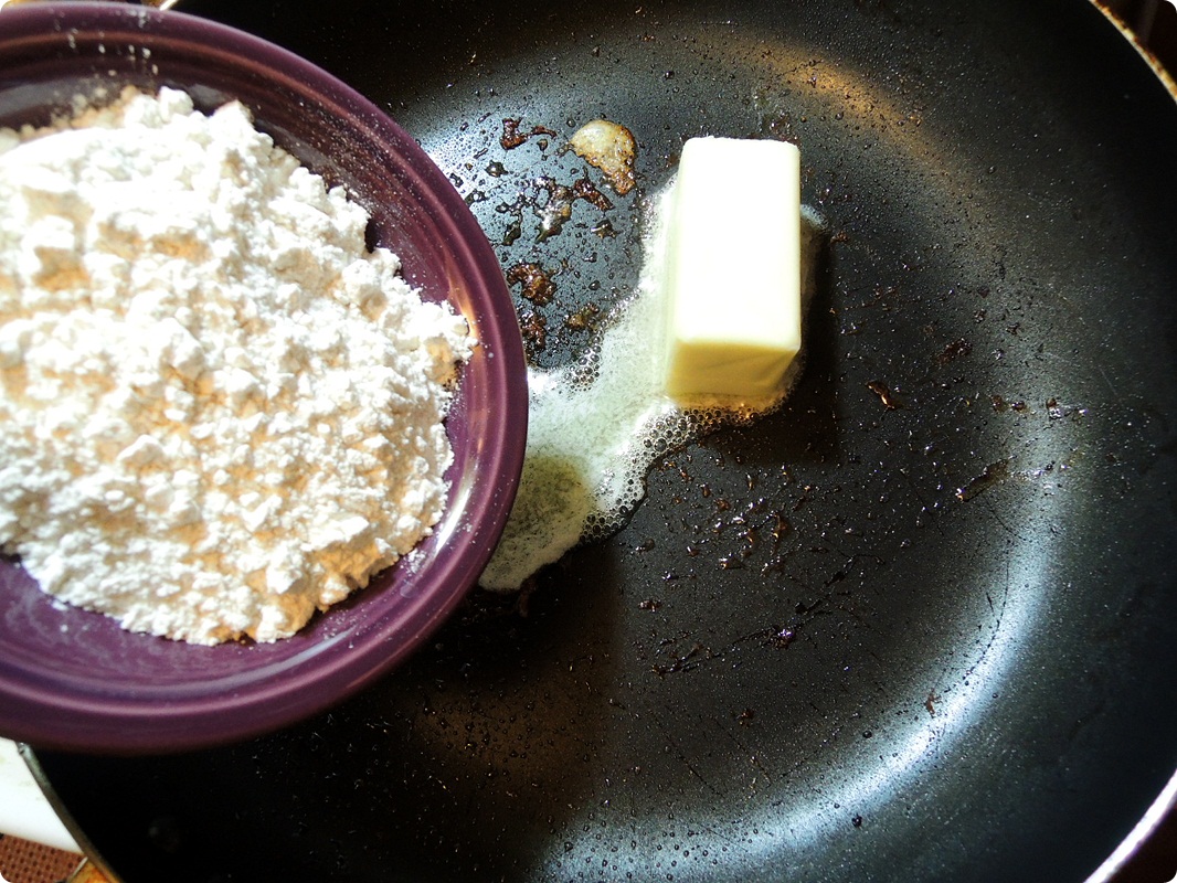 Now, let's make the sauce. On a frying pan, add the butter and the flour