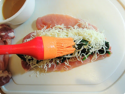 Add the stuffed pork and glaze well. Don't cook all the way!