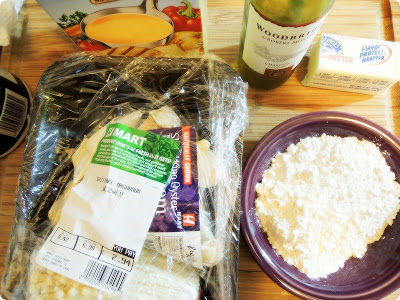 醤油:1/2小麦粉、1/2、バター、白ワイン、チキンストック、いくつかの混合キノコ