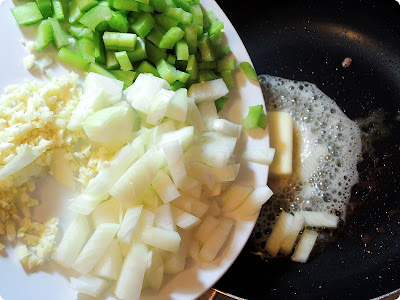Now, time to cook the celeries, onion, and garlic