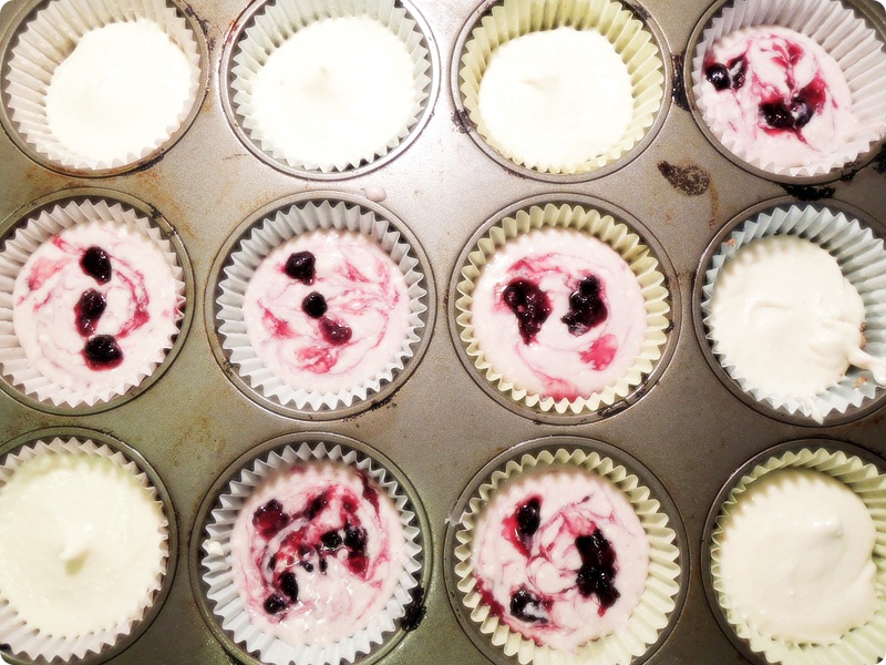 For my blueberry cheesecakes, I made blueberry swirls.