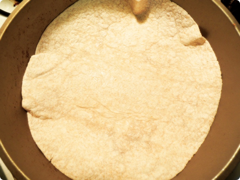 또띠아를 한장 마른 펜데 놓고 살짝 익히구요 (앞뒤 모두)