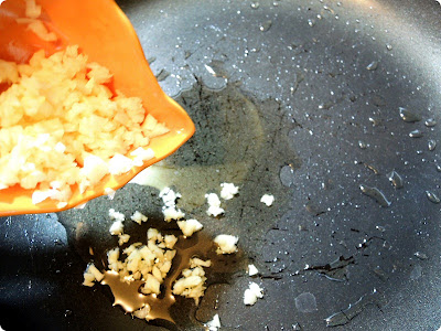 On a warm frying pan, add good amout of oil and chopped garlic