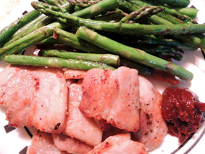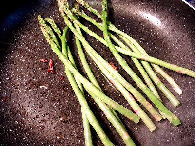Cook some asparagus using the same frying pan that I just cooked the meat.