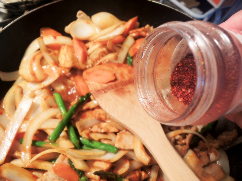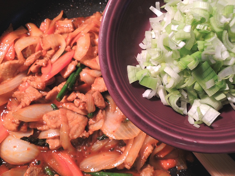 #2. Make 제육볶음 (jeauk bokkeum), spicy stir-fried pork with vegetable.