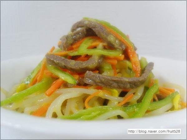차돌박이,콩나물,피망,당근, 겨자소스(본문참조)