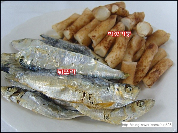 표고버섯기둥물이 어느정도 우러났을때 뒤포리를 넣어주시는게 좋답니다..