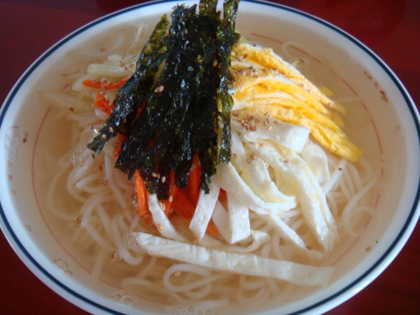 7) 국수를 그릇에 담고 준비된 고명들을 올려주세요