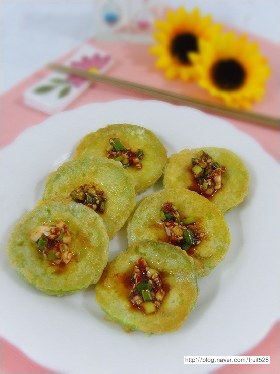 애호박,소금,달걀, 밀가루,식용유,양념장(본문참조),울금가루(생략가능)