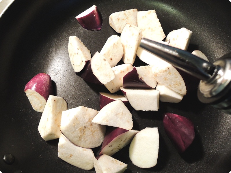큰수저로 한 4번~5번 넣고 소스가 걸죽해질때까지 가지를 버부리면서 구워요~