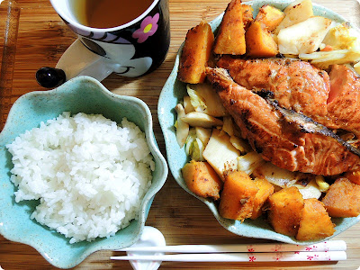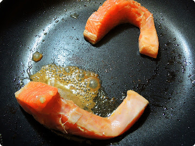 Time to cook my beautiful salmon~ :) Later, assembled all of my preps~