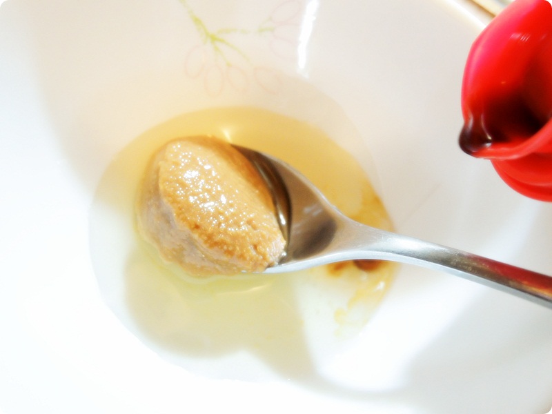Let's make the sauce! One tsp of dashi miso~