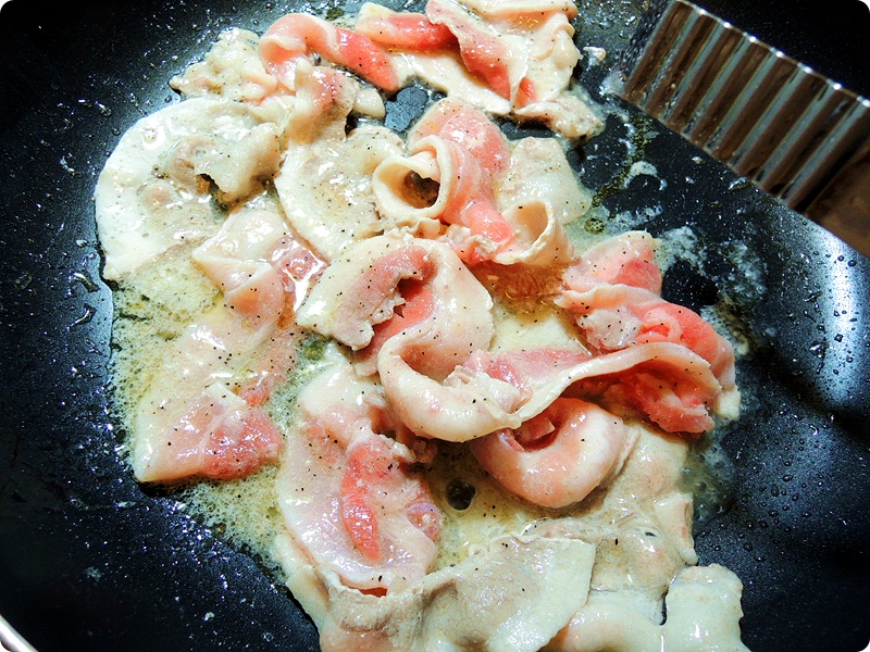 Cooked the meet with some pepper, salt and sesame oil.