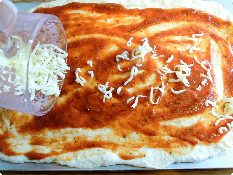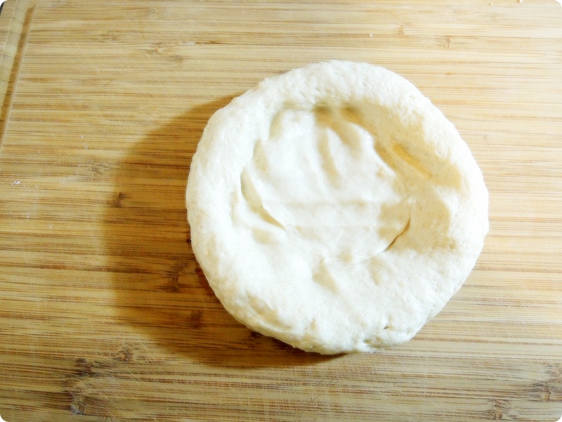 Mix all of the dough ingredients and make the ball. Put the dough in a warm place about an hour.