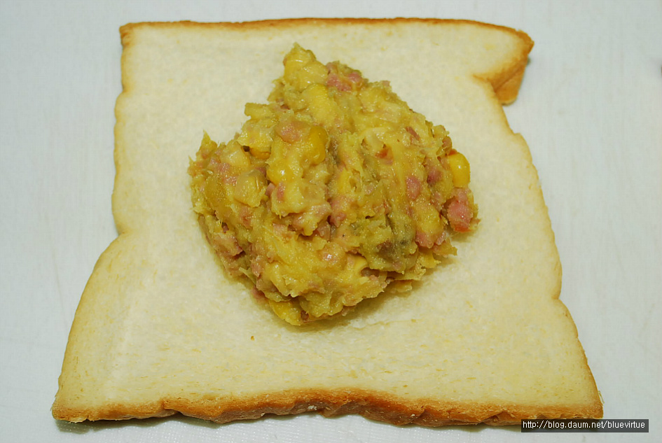 호박고구마, 식빵, 캔옥수수, 소세지, 마요네즈