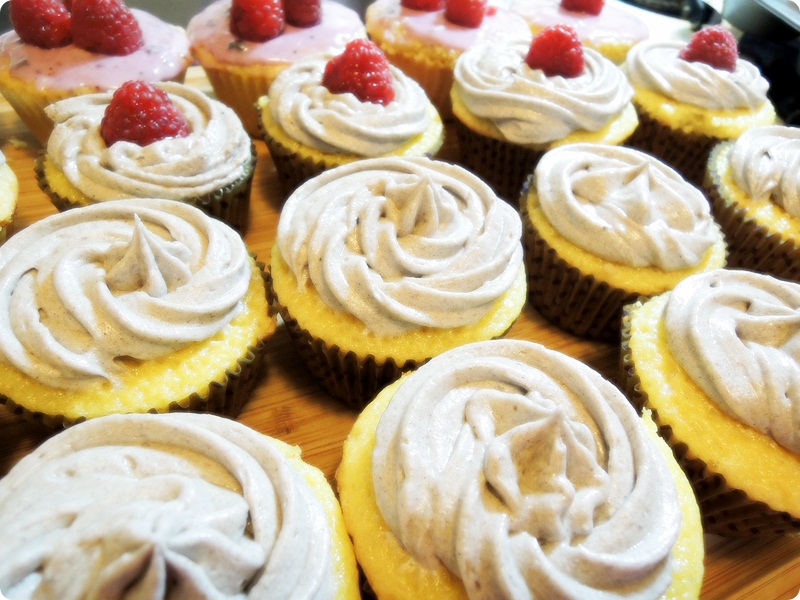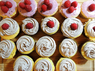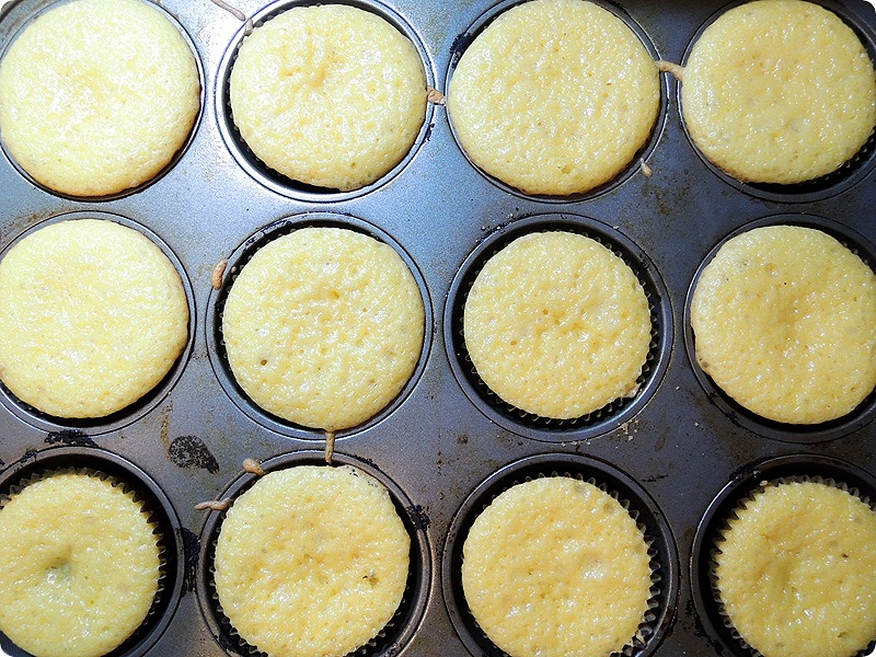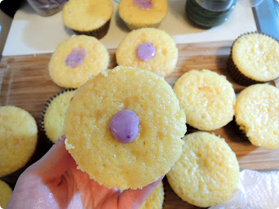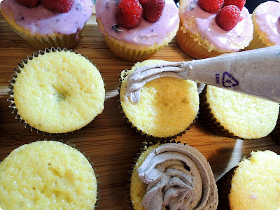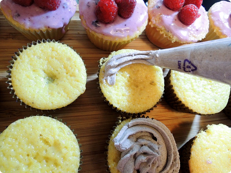 I piped in the blueberry frosting in the plain cupcake