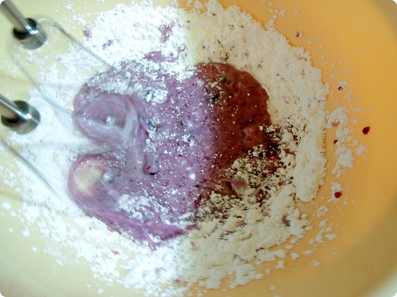 블루베리 아이싱을 만들어 볼라구요~ 같은 방식으로 블루베리 잼을 넣습니다