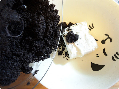 Add the grounded oreo to the room temp cream cheese~