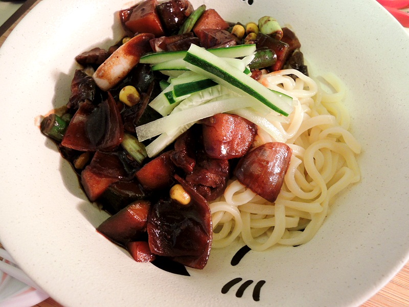 제가 만든 짜장면이예요~ 칼국수 면에 준비해준 소스가 차가워져서 뎁힌뒤~