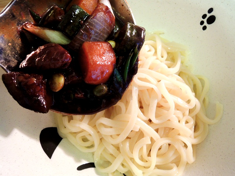 재료 : 고기, 호박, 양파, 파, 감자, 건조 고추, 오이, 춘장