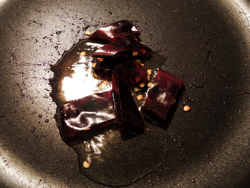 Let's cook the dry re pepper and the oil will release the flavor into the oil.