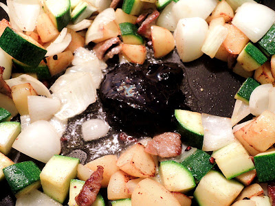 When the potato half cooks add the vegetables