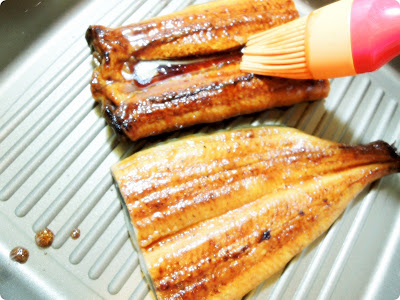 암튼, 장어가 너무 길어서, 반으로 쫙! 잘르고~ 소스를 발라가면서 요리조리 구웠습니다~