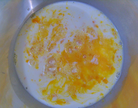 계란과 설탕을 섞어준후 녹인버터를 넣어주고