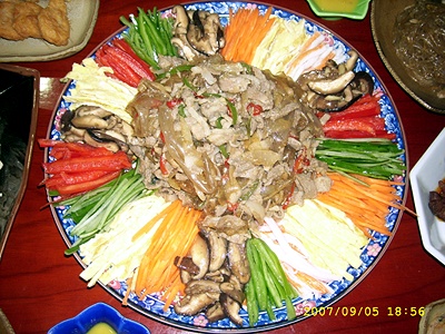 6. 접시에 채썰어 둔 재료들을 빙 둘러 예쁘게 담고 양장피를 담는다.