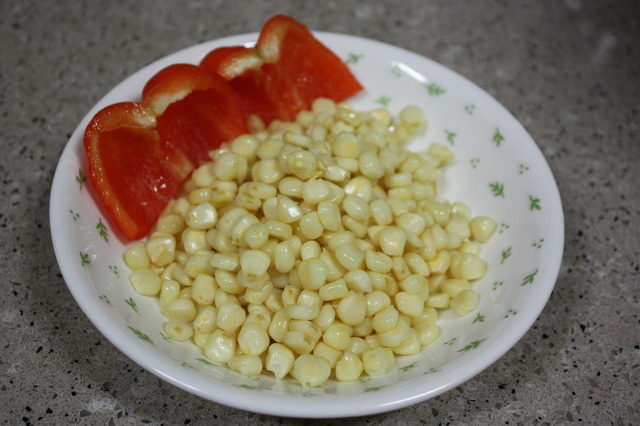옥수수는 작년 텃밭에서 수확하여 냉동실에 얼려 둔게 있었어요.