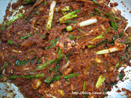 5. 넓은볼에 3, 4의 재료와 고춧가루, 새우젓, 멸치액젓, 다진생강,