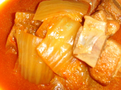 배추김치 반쪽, 돼지갈비 반근., 고추장 2큰, 설탕 1큰,대파, 양파, 생강.
