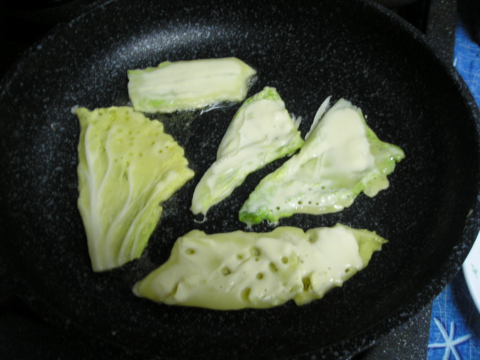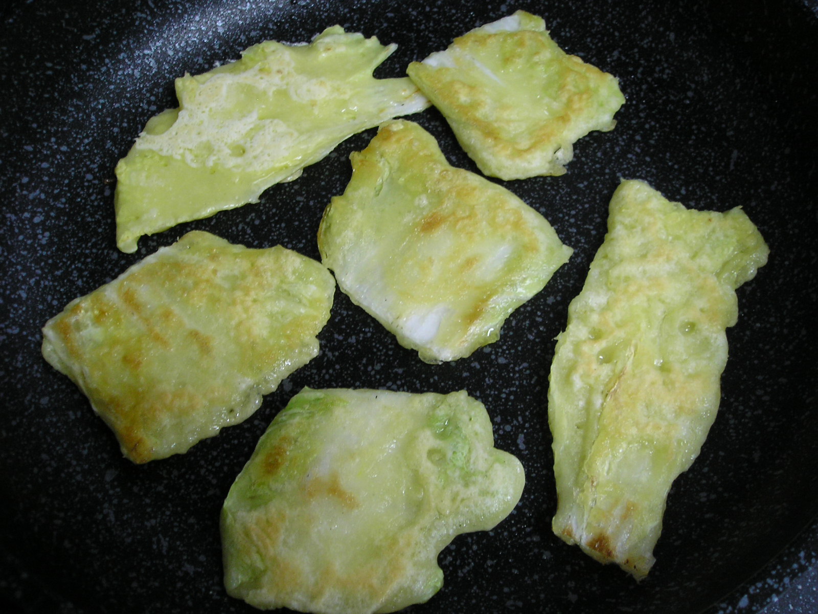 밀가루 반죽을 입혀 후라이펜에 노릇하게 부친다.