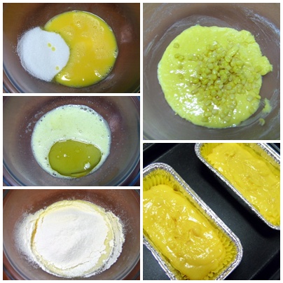 4. 옥수수 통조림을 넣어 반죽을 완성한 후 파운드틀에 담고
