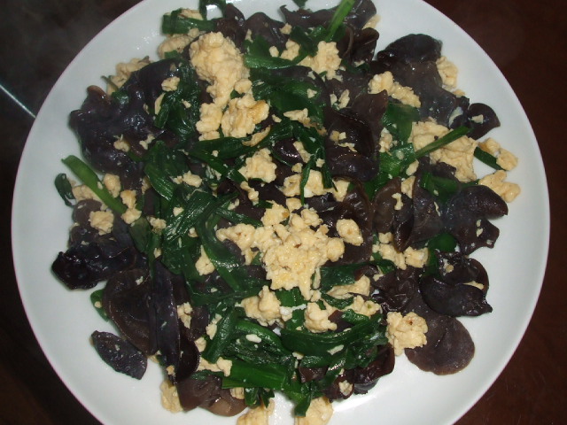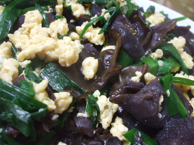 목이버섯50g,계란한개, 부추,후추,소금,식용유