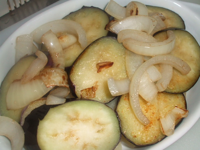 그라탕 그릇에 가지와 양파를 얹어주시구요