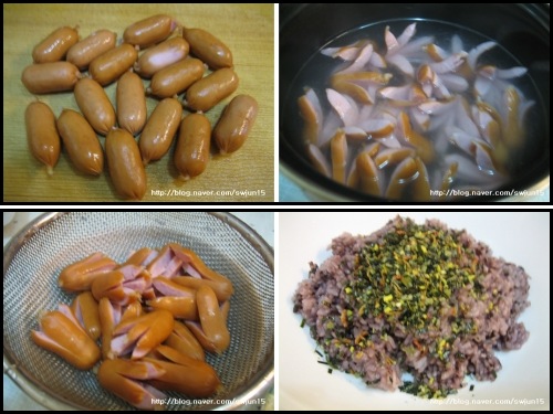 4. 3을 작은 크기로 동글동글하게 뭉친 후 비엔나 소시지 윗부분에 끼어