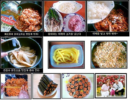재료: 묵은김치,양파,참치,, 단무지,어묵,계란,햄,다짐육,김,밥