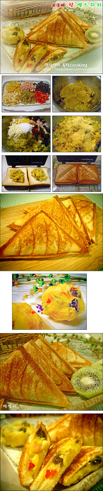 하나를 얹고 위에 2의 속재료를 올린후 식빵하나를 덮어주고