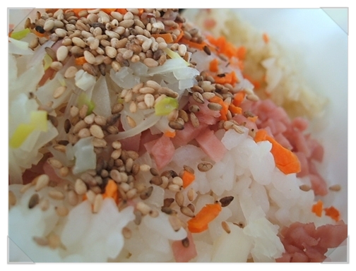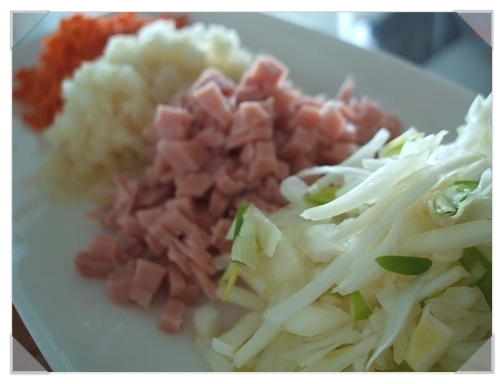 준비한 재료 당근 감자 양파 햄을 잘게 썰어서 전자렌지에 2분정도 돌려도 되고