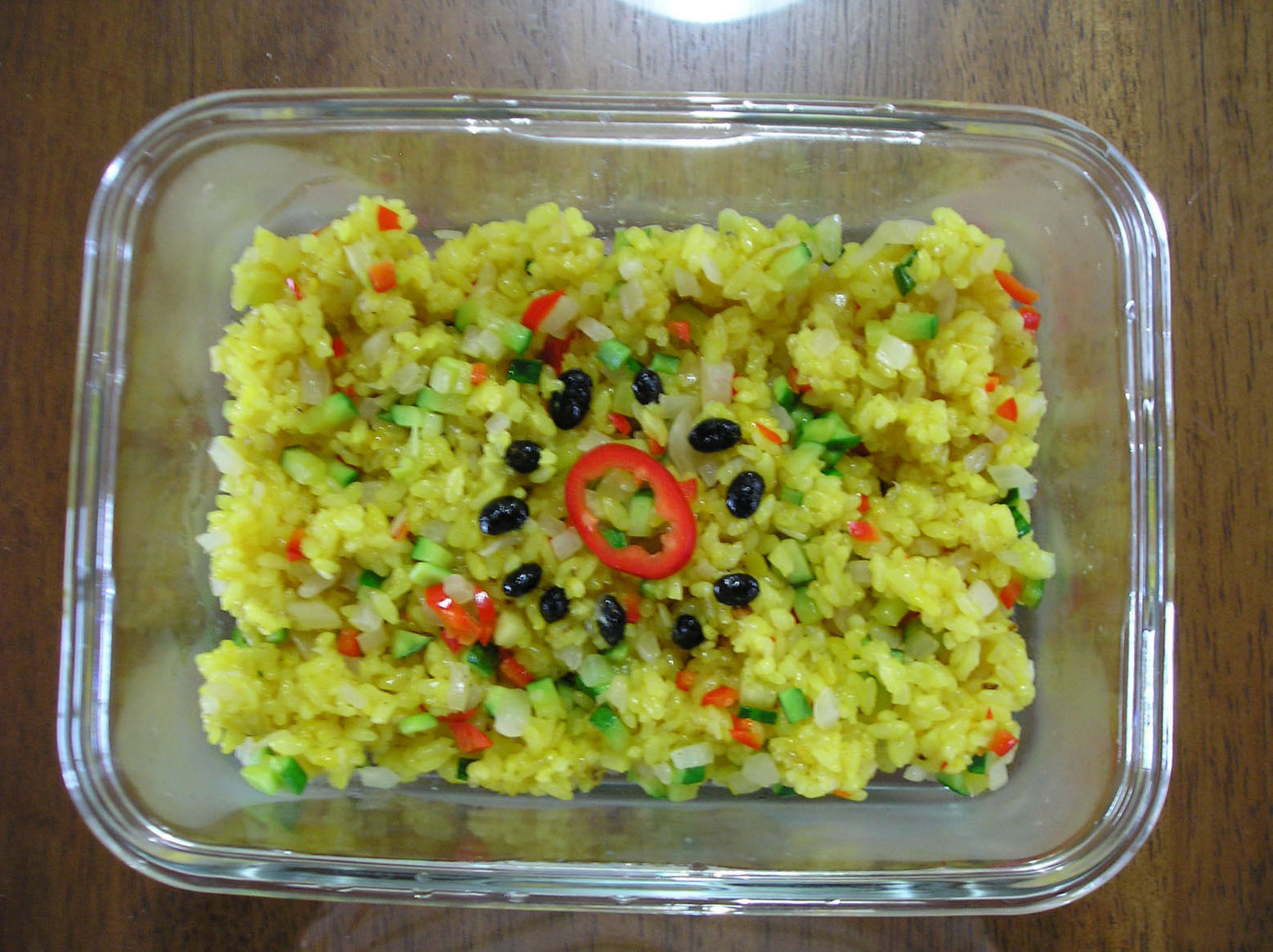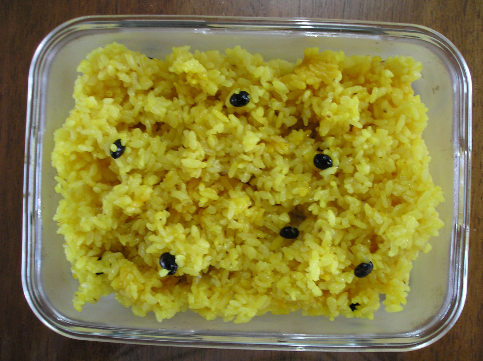 * 노란 강황밥 완성 - 이렇게 도시락을 싸서 나들이를 가도 좋다.